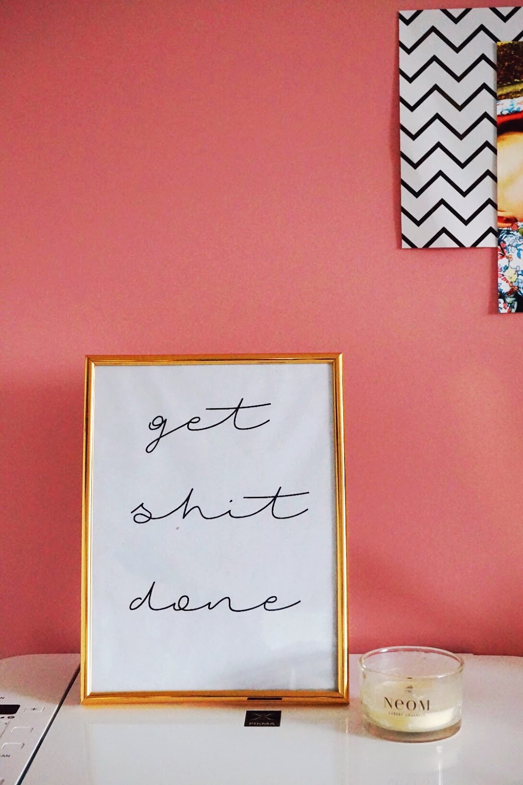 I bought the pink board from B&Q, originally intending it to be for blog pictures, but I like using it as a bit of a pinboard, without the pins. I just really like the pop of colour it adds to the room; is it wrong to want one in every room of my house? After a bit of a tidy up it feels like a whole new space, now just to find the time to actually do some work in there!