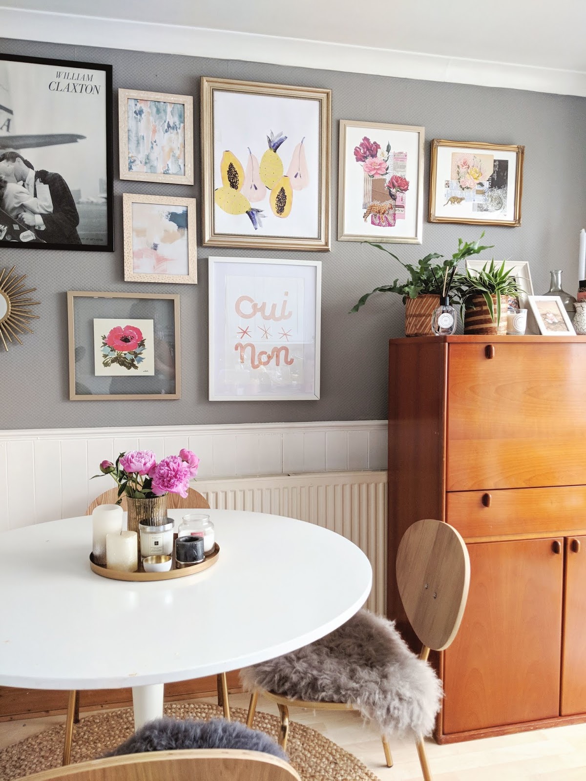 If you saw my "Updated Dining Room" post, you'll know what we had a bit of an ol' switch-around in here recently. Gone are the mid-century chairs in place of the most stunning, gold-legged set I've ever seen, and we painted the walls grey. Before this, I did have a bit of a gallery wall behind the dining table, but after making the change to grey, nothing really seemed to fit the space.